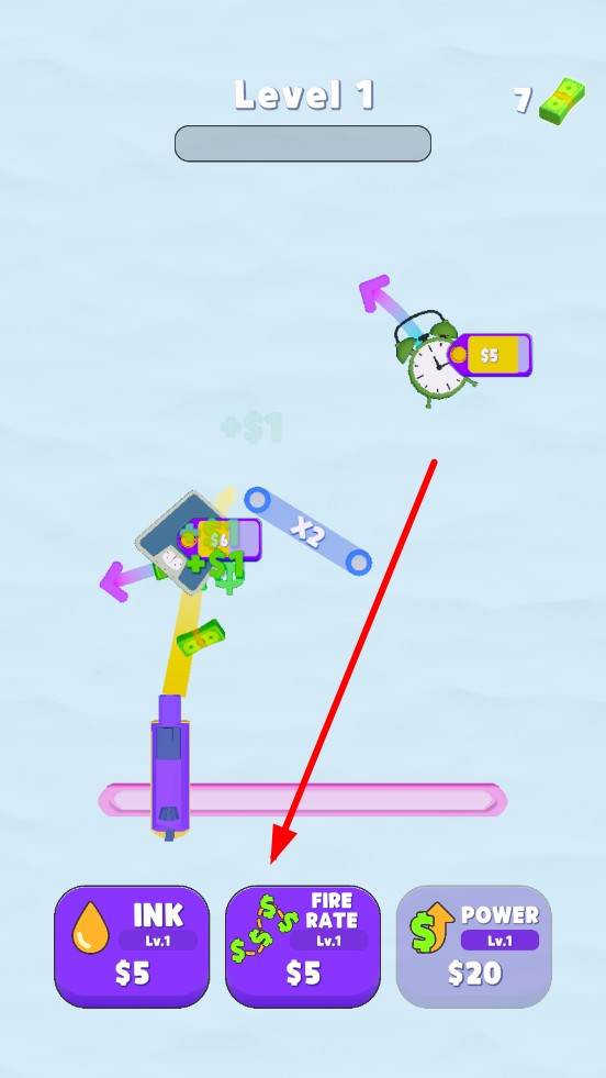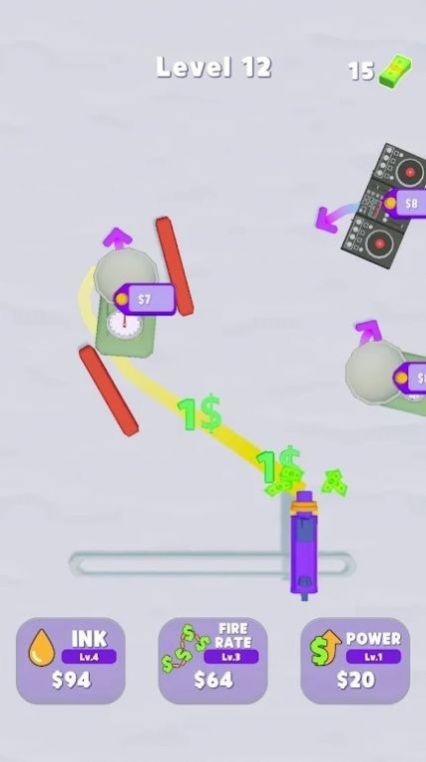 2、策略升级体系:墨量、射速、收益构成互补链条,射速快却单枚价值低是赚快钱,收益高但发射慢易卡关,精心规划升级顺序,直接决定发育快慢节奏。