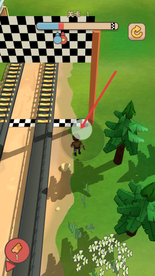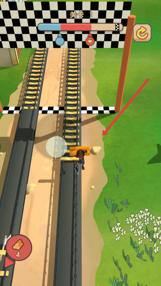 3、优先填补靠近终点,黑白格旗的轨道缺口,要注意躲避场景中的障碍,尽快的完成轨道的铺设。
