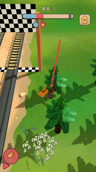 2、搬运木头到轨道的缺口处,放下木头进行填补,让轨道连通,继续推进关卡进度的顶部的进度条。