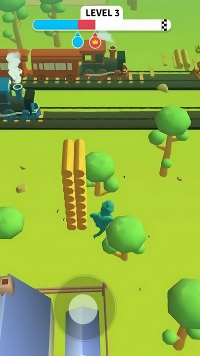 1、点击屏幕控制角色移动,靠近树林里的木头就进行砍伐,底部红圈显示数量,走到木头旁自动搬运。