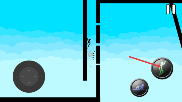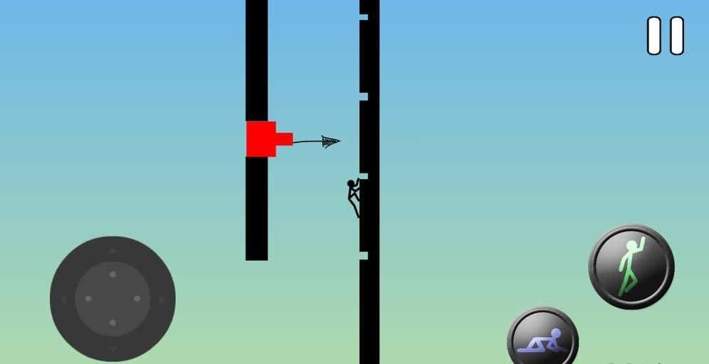 1、需要点击右侧的绿色图标来控制角色进行跳跃,遇到窄沟、矮墙时,把握时机就跳跃通过。