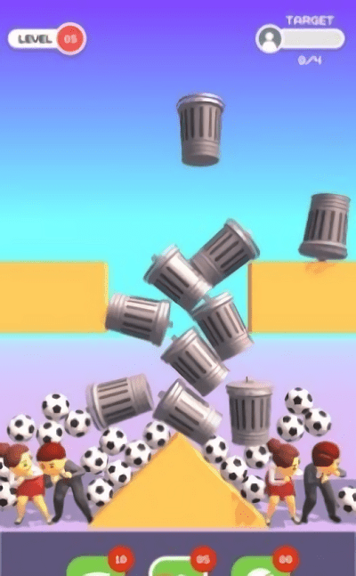 1、躲避与阻挡双重挑战:玩家不仅要操控小人躲开掉落的物品,还要兼顾放置物体保护人群,双重操作考验反应速度和技巧,让每一关都充满竞技性和成就感。
