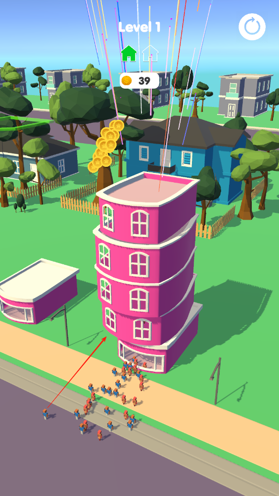 3、当楼房达到当前模式的高度目标且人员安全住进去,整栋楼没有爆炸即可算作游戏通关,系统则会发布奖励并解锁新的楼层样式。