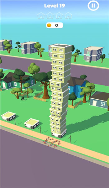 2、平衡挑战核心玩法:以保持高楼平稳为核心目标,每一次叠加都需精准判断重心,倾斜时可通过爆破调整,平衡与建造的结合考验空间感知力,又有益智挑战乐趣。
