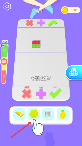1、在下方道具栏找到金色长条样式道具,点击它进行投掷宝贝操作。