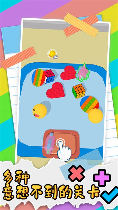 1、关卡丰富魔性上瘾:拥有海量游戏关卡和无尽的挑战,每个关卡对应不同的解压小游戏(如挤泡泡、撕纸、砸东西等),魔性的玩法让人沉浸其中。