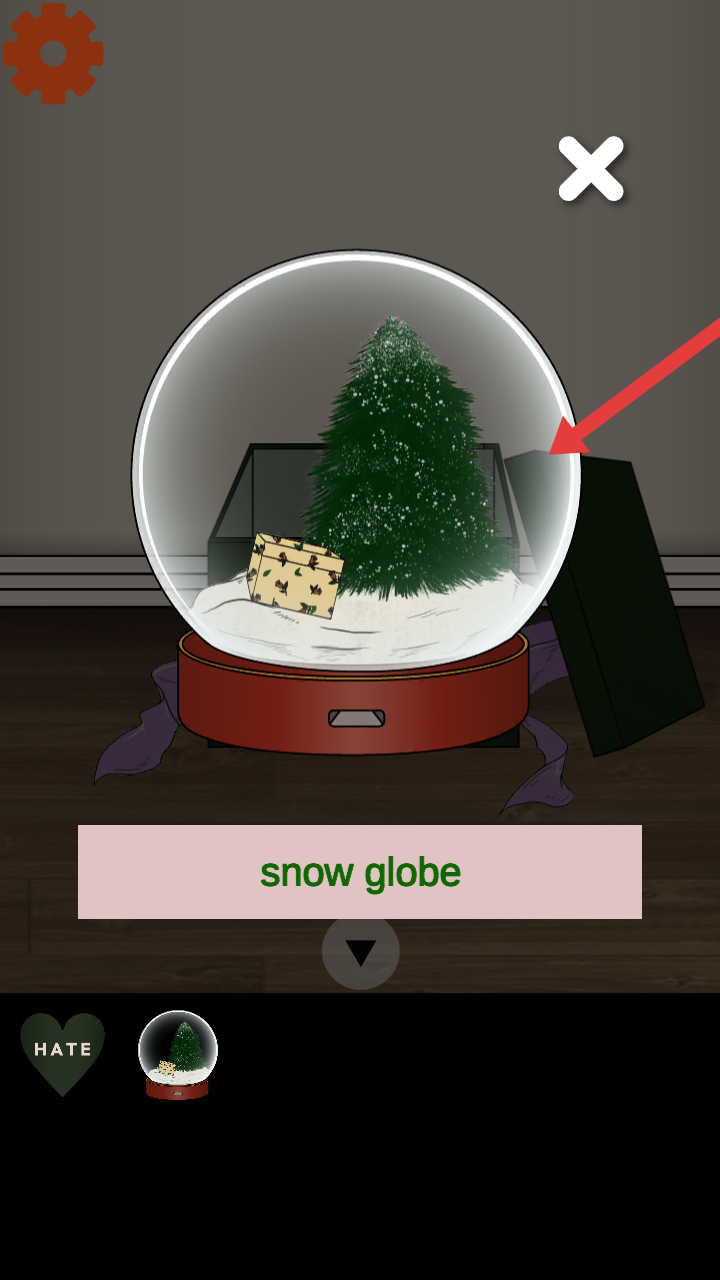 3、观察水晶球snow globe球体内部的场景,查看圣诞树、礼盒等元素,挖掘隐藏线索,辅助解开场景谜题。