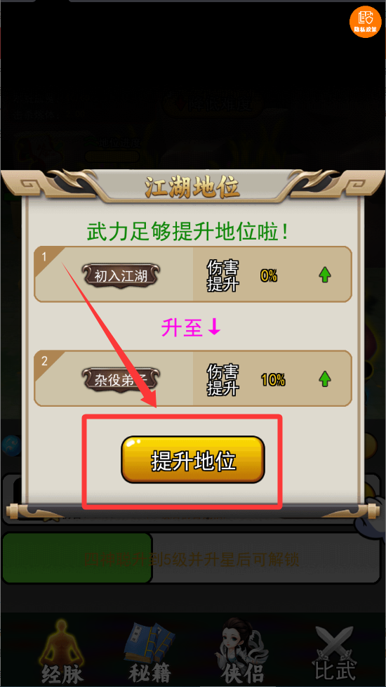 4、按一下提升修为按钮直接升级。