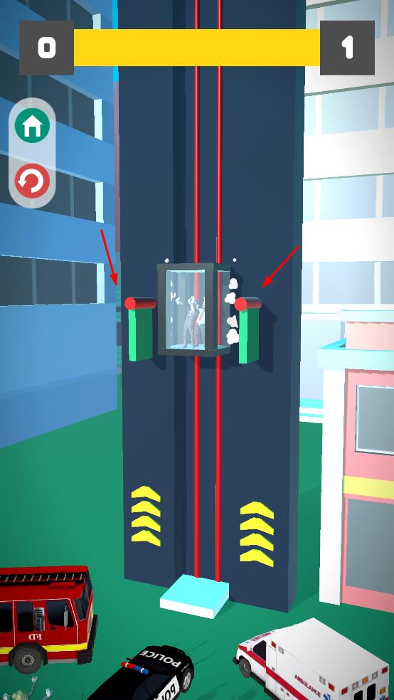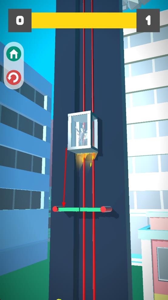 1、关卡初始,点击绿色横杆使其展开,承接下落的玻璃电梯,防止箱内人员坠落。