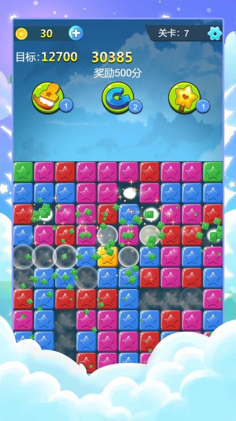 1、动态星星方块系统充满惊喜,特殊星星方块会随机出现在关卡中,收集后可触发全屏特效,配合精心设计的动画效果,带来视觉与玩法的双重享受。