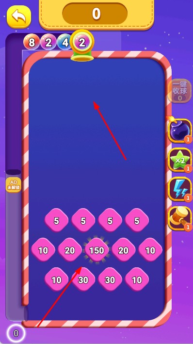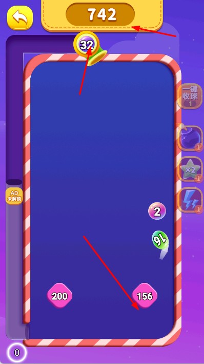 1、开局准备与观察:点击开始挑战进入界面,观察初始分布的数字小球,识别2等基础数值位置,留意悬浮小球的移动轨迹,在脑海中初步规划发射顺序与目标。