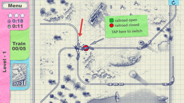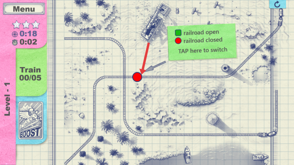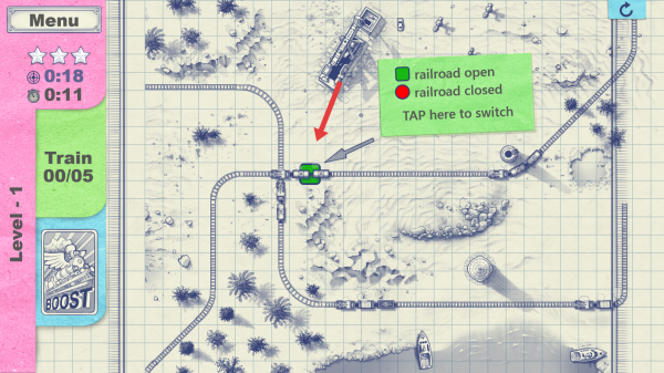 3、若火车即将碰撞,快速点击开关改道,确保5列火车安全通过,完成Level1任务,获取星星奖励。