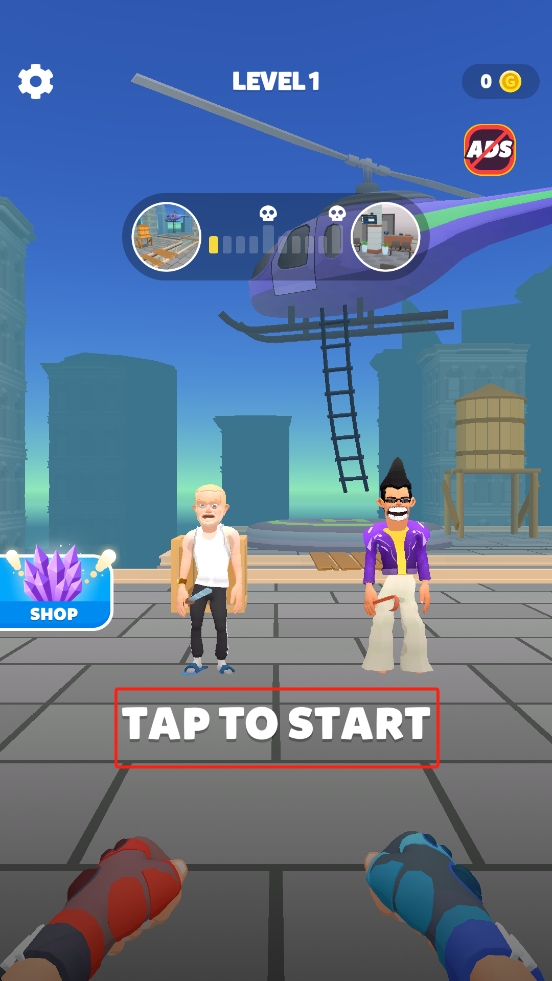 1、进入作品后我们点击TAP TO START按钮开启第一关的挑战,操控角色和两名敌人战斗,用技能打倒对手。