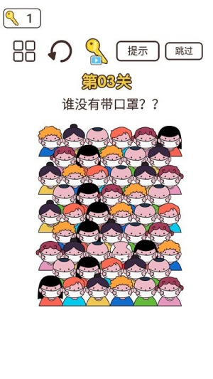 1、玩家在游戏中需要完成找茬关卡,找出隐藏在人群中没有戴口罩的同学。通过仔细观察图片,发现不戴口罩的同学并将其揪出来。