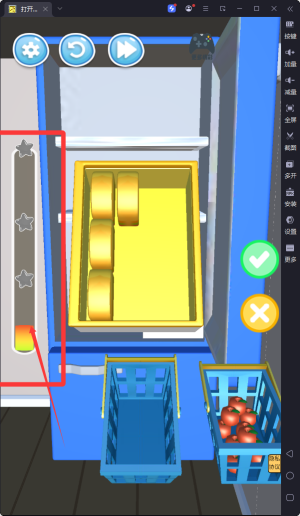 1、玩家在游戏中需要将不同的物品装入盒子,并尝试将它们全部放入保险箱(类似冰箱的收纳空间)。这需要玩家仔细观察物品形状。