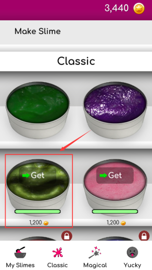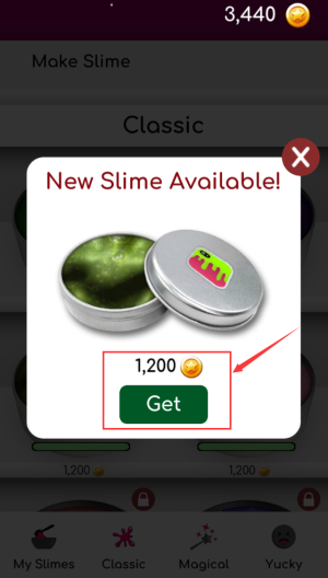 4、点击红框Get按钮,花费1200金币购买新史莱姆。