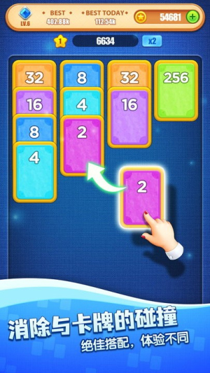 1、这是趣味十足的手机数字合成类休闲益智小游戏,其核心玩法是将相同数字大小的卡牌进行合成。这种独特的玩法为玩家带来新颖的游戏体验。
