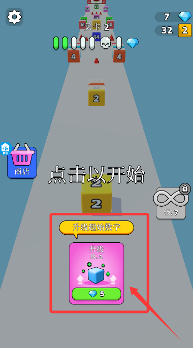 4、新关卡准备阶段,消耗宝石提升初始数值,为后续合成创造优势条件。
