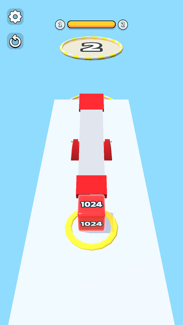 1、轻触开始按钮,控制数字方块在通道滑动,寻找相同数字进行合成。
