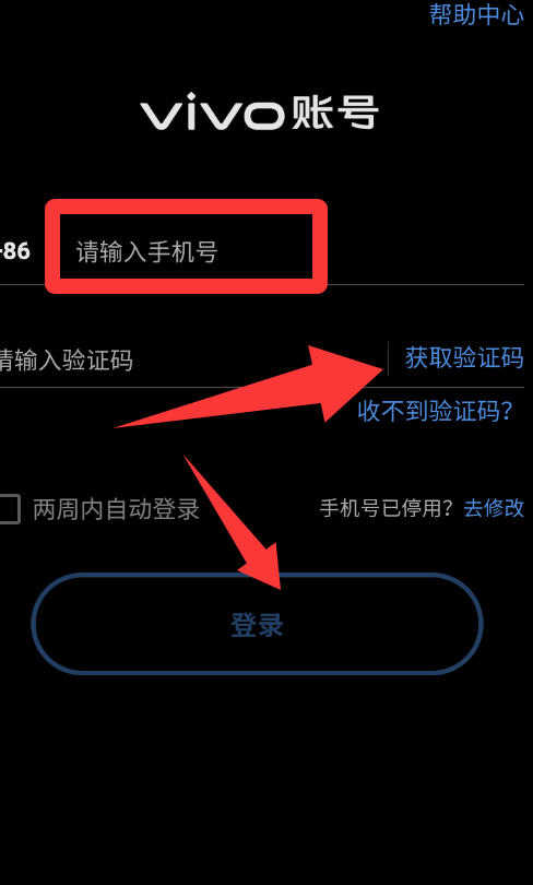 2、输入手机号码获取验证码再点击登录。