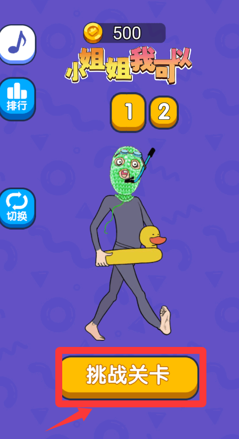 2、进入游戏界面点击红色框框里的挑战关卡。