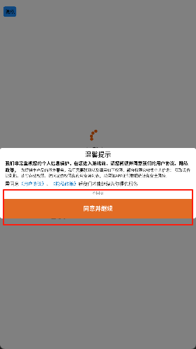 2、加载完成后,点击同意并继续即可进入游戏。