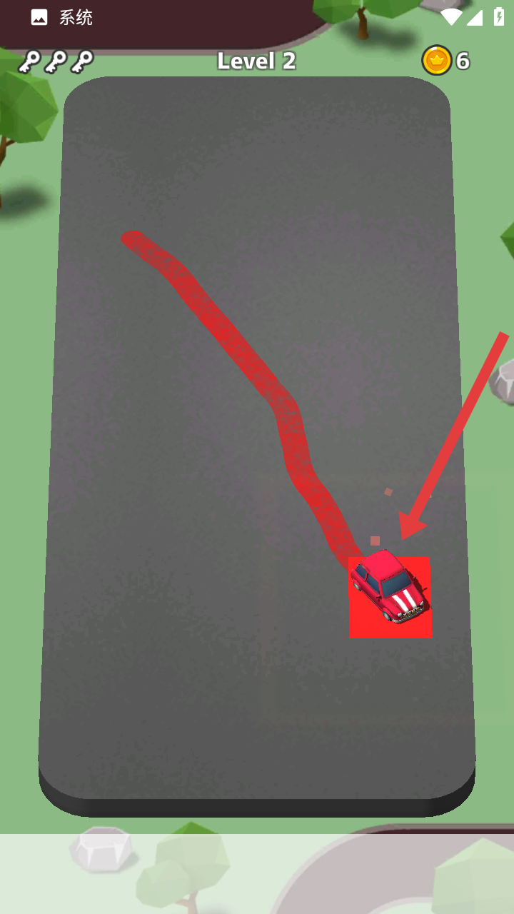 2、驾驶红色小车沿着路径行驶至终点,当车辆完全进入红色方框标识的停车位区域,即完成Level2关卡。