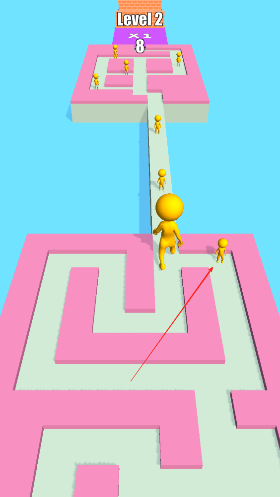 2、在迷宫里转向收集小人,巨人不能临时拐弯,只有碰到障碍才会停下,然后控制巨人前后移动还是左右移动,一旦错过小人没有收集,就无法回头。