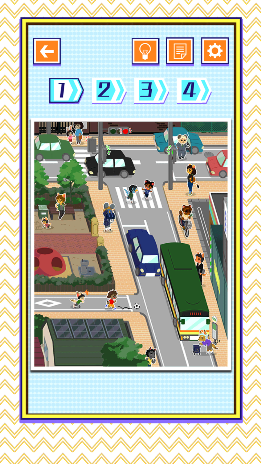 3、观察街道场景,识别道路上靠近车辆的孩子这一安全隐患,标记此类危险点完成关卡任务,提升场景内的安全判断能力。