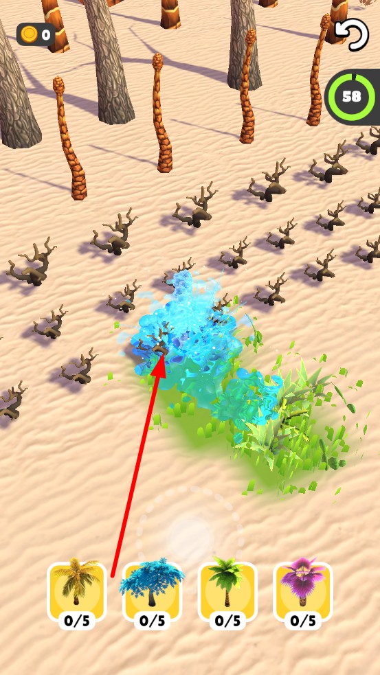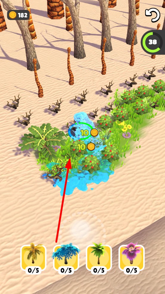 2、资源博弈技巧:沙漠阶段,金币优先升级种植速度,或解锁新树。跨区前,保留部分的金币应对沙暴灾害,避免生态崩溃后一夜回退,保障生态系统。
