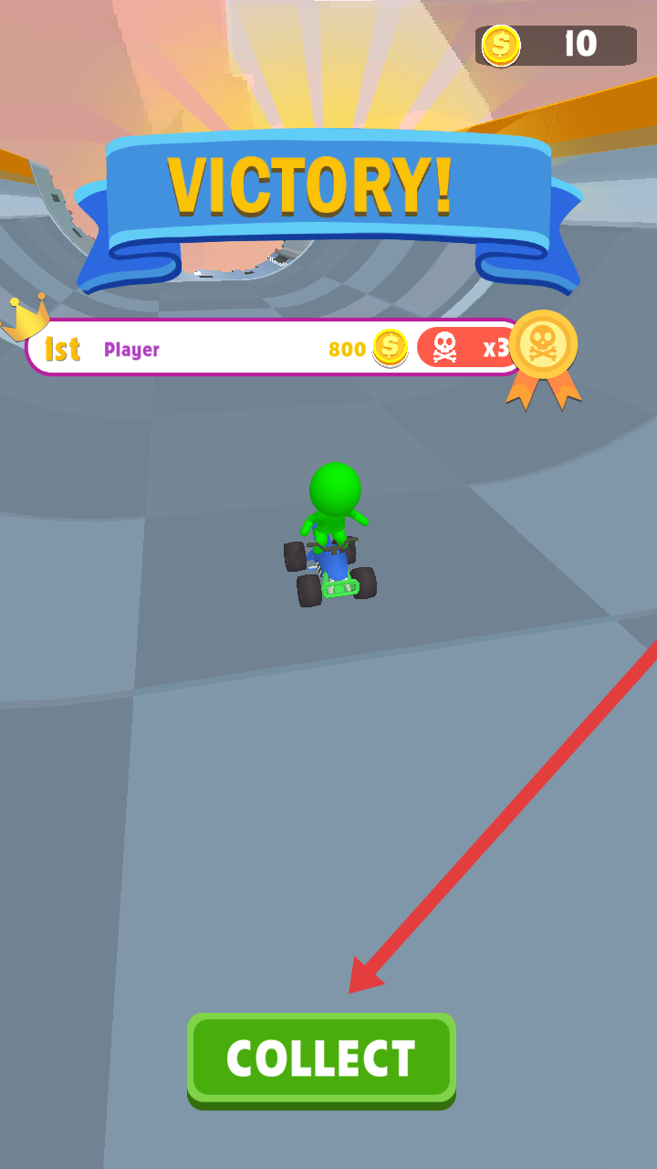 3、冲线获得胜利后,点击绿色COLLECT的按钮,领取800金币及奖励,解锁后续的关卡与内容。
