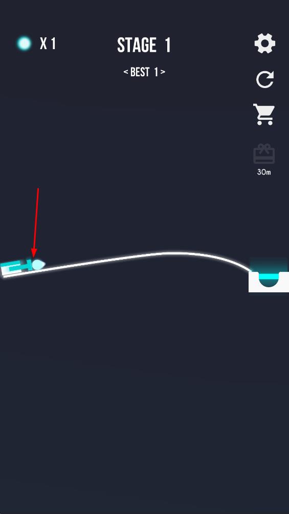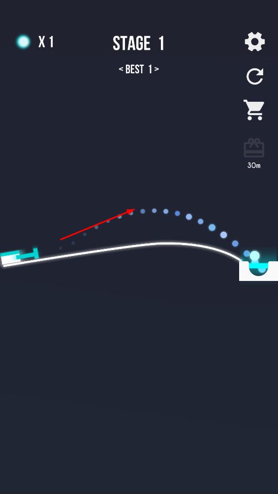 3、推进至STAGE2,延续发射策略,让小球精准落入右侧目标区域。