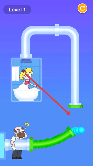 1、管道连接巧规划:观察场景中分散的管道,运用不同策略拼接管道,构建完整水流路径,确保水能够平稳流向女孩的浴室,考验空间布局能力。