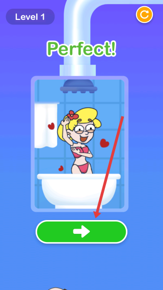 1、在Level-1中,调整绿色软管连接管道,引导水流抵达浴缸,为泡澡的角色提供水源,完成该关卡供水任务。
