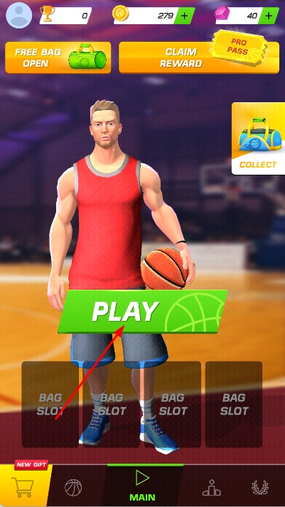 1、进入游戏,在主界面点击PLAY按钮,开启篮球竞技挑战。