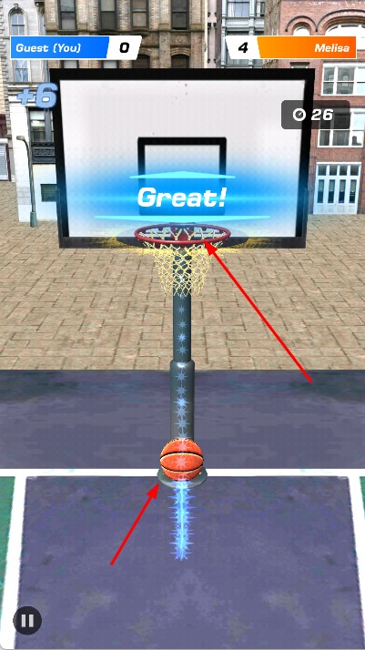 2、实时反馈激励竞技:投篮入网的音效、Great!等得分提示、比分反超的震动反馈,从多维度强化操作成就感,让每一次得分都带来强烈正向激励。