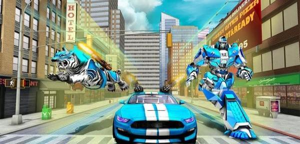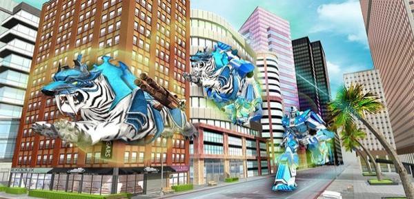 2、自由变换形态战斗:根据战斗需求,在机器人、汽车、老虎以及其他动物机器人形态之间自由切换,利用不同形态优势应对敌人,取得胜利。