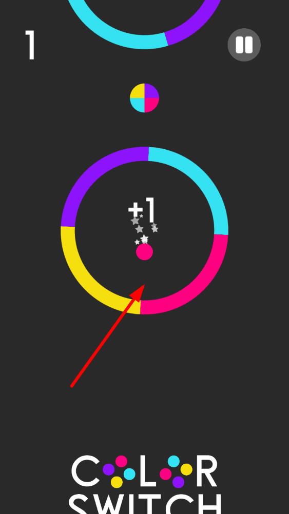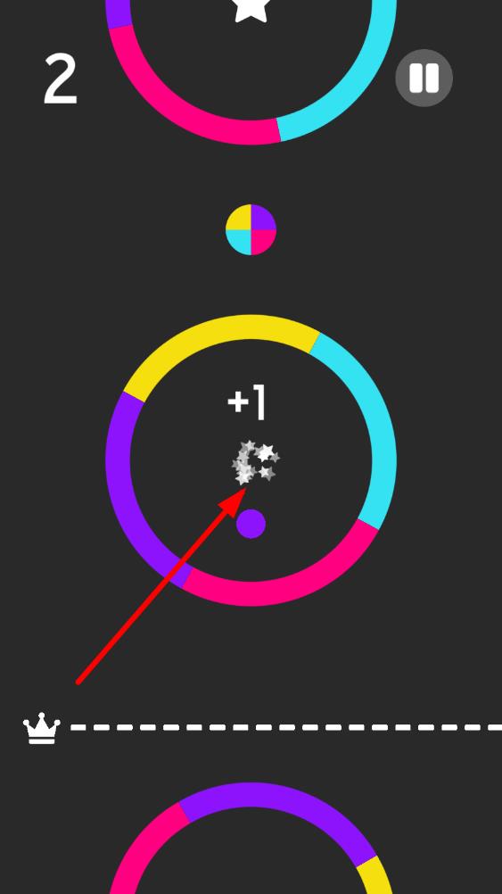 2、小球向上移动时,接近障碍前利用缓存区域改变颜色,紧盯旋转轮盘,找准相同颜色区域时机快速穿过,避免碰撞。