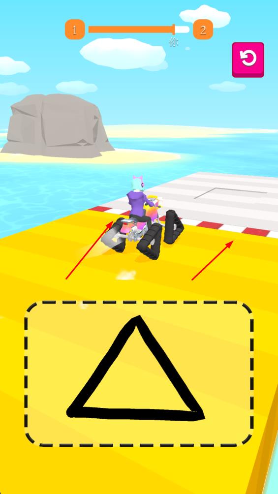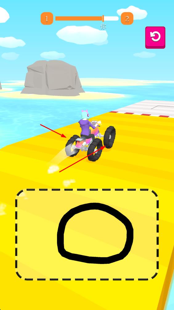 3、随关卡推进,绘制不同图形适配赛道,优化摩托性能,向终点进发。