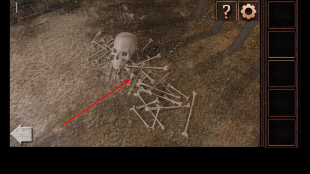 2、探索场景过程中,点击地面散落的骷髅及周边区域,收集隐藏的线索或道具,为后续解谜积累资源。