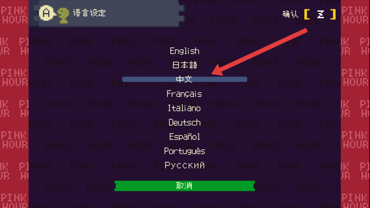 1、进入游戏界面后,在粉红时刻的语言设定界面,我们可以选择中文的选项,完成语言切换,方便我们游玩。