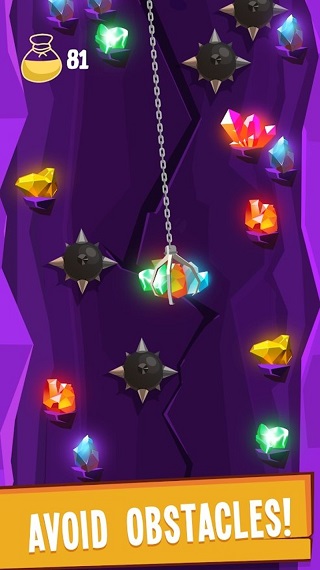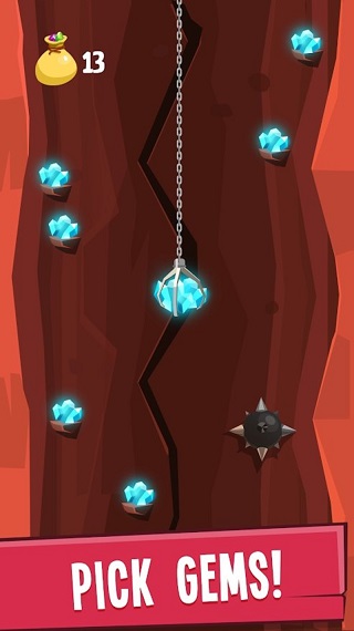 1、精准挖掘操作:点击屏幕控制铁链钩子的释放与回收,瞄准地下钻石、金币等资源,通过稳定操作确保成功捕获,避免碰撞地雷。