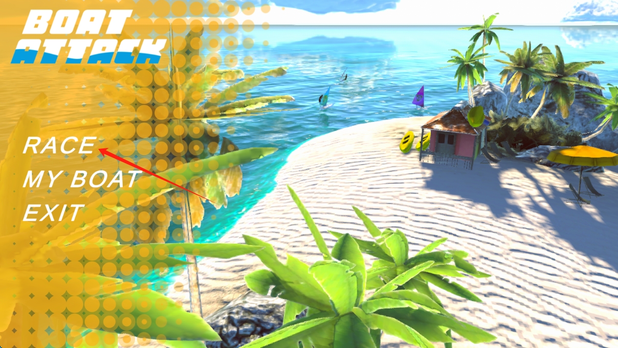 1、主界面选RACE,进入水上竞速赛道,开启比赛,点击按钮进入道具游戏当中来。