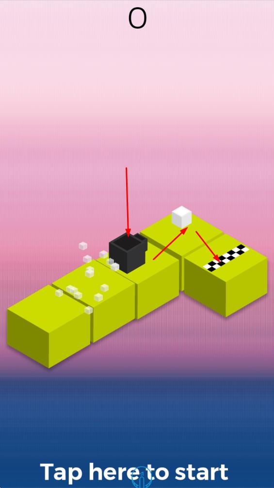 1、点击Tapheretostart启动,操控方块沿路径移动。