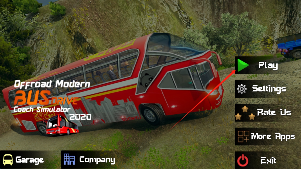 1、主界面点击Play,进入游戏,开启越野巴士驾驶挑战,点击按钮开始当前的游戏。