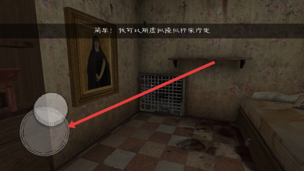3、进入房间后,根据提示熟悉虚拟操纵杆,通过摇杆控制角色行走,开始探索诡异房间,推进游戏。