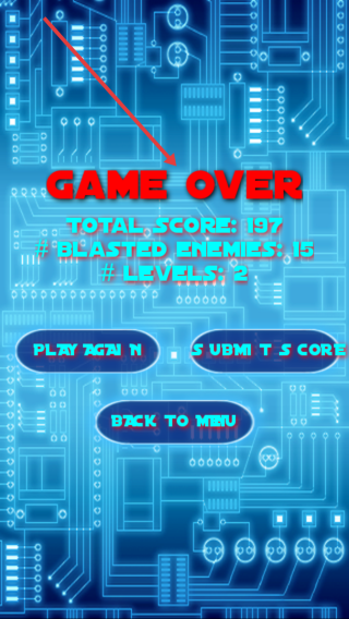 3、若游戏失败显示GAME OVER,可点PLAY AGAIN重开,或BACK TO MENU回主界面。