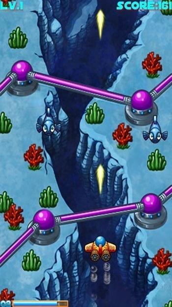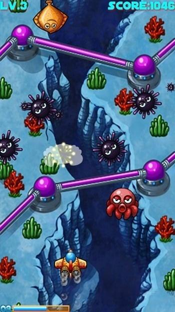 3、简单轻松体验:操作仅需要摇杆移动+按键射击,无复杂规则与操作门槛,新手快速上手,适合闲暇时享受轻松的海底闯关乐趣。