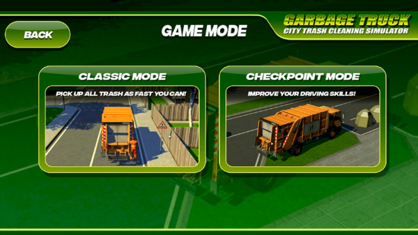 1、进入游戏后,先选择经典模式或Checkpoint模式,熟悉垃圾车的方向盘、齿轮等操作,驾驶车辆前往地图标注的垃圾点开始收集。