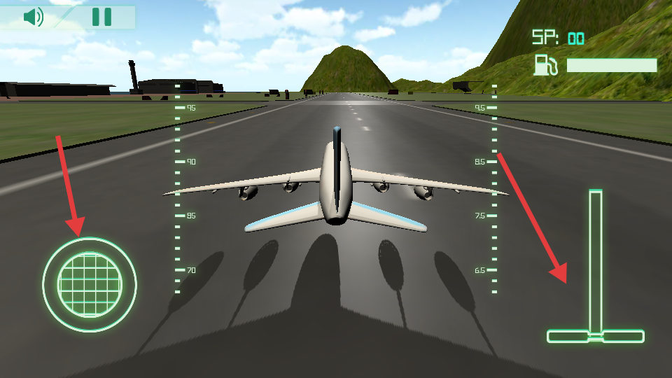 1、通过虚拟摇杆和触控按钮控制推力矢量与襟翼角度。
